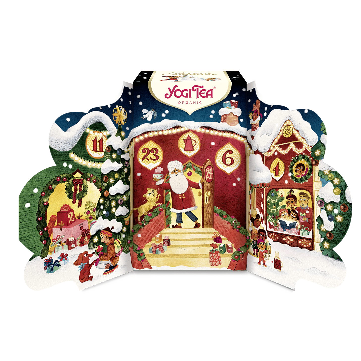 BIO YOGI TEA® Ziemassvētku tēja. Ājurvēdisks augu maisījums ar medus krūmu, kanēli, anīsa zvaigzni. Sastāvdaļas: Roibušs*, kanēlis*(13%), lakrica*, koriandrs*, medus krūms*(6%), apelsīnu miziņas*, krustnagliņas*, melnie pipari*, anīss*, sausā citronu sula*, anīsa zvaigzne*(3%), kardamons*, grauzdēti cigoriņi*, laims*, apelsīnu eļļa*, kanēļa eļļa* A.